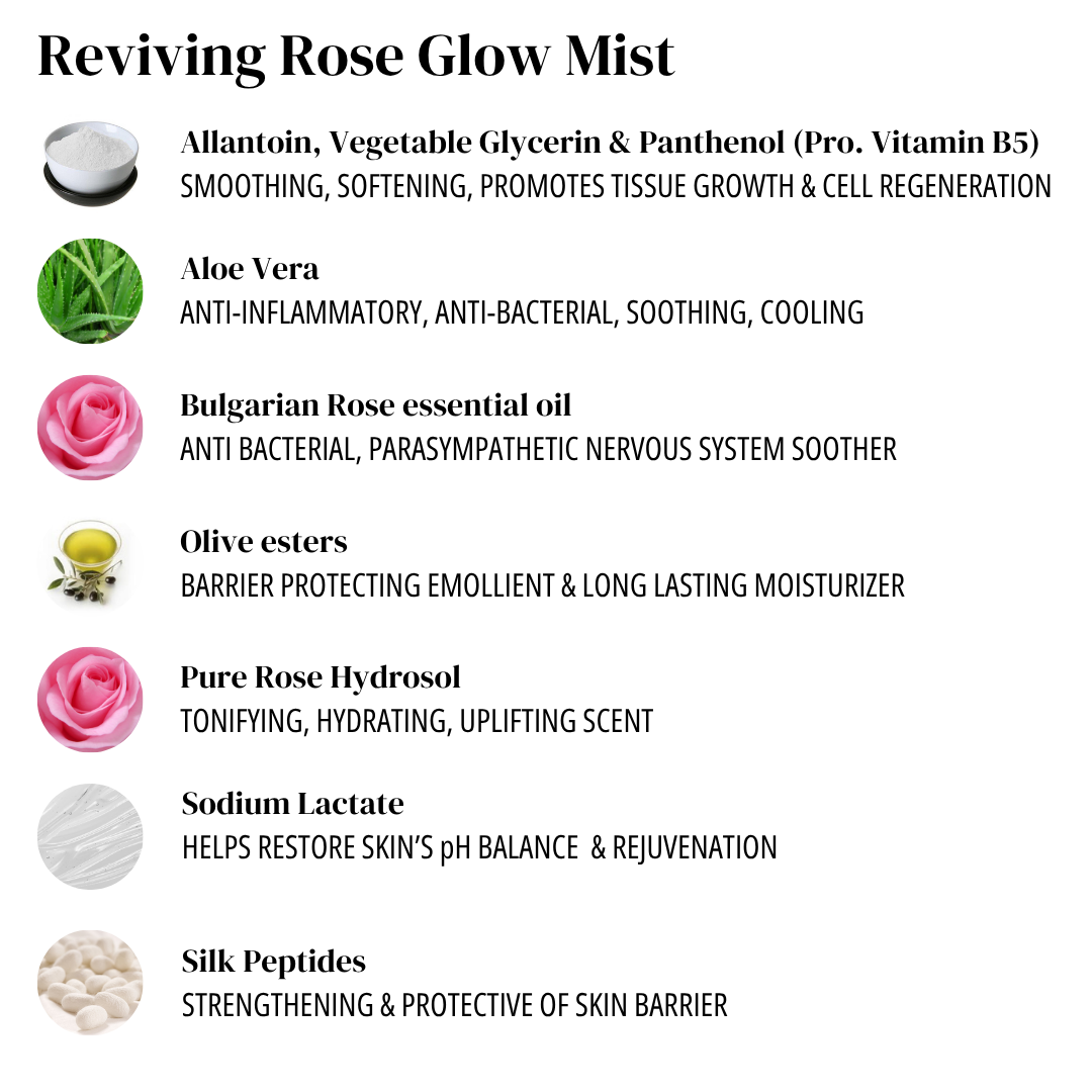 Reviving Rose Glow Mist- Dewy Finish Facial Mist With Roses, Pro-Vitamin B5 (Panthenol), Glycerin & Peptides
